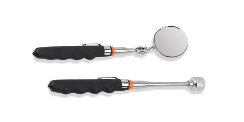 A telescoping magnet and mirror are useful tools for home inspections, allowing access to tight spaces and helping locate hidden objects in hard-to-reach areas.
